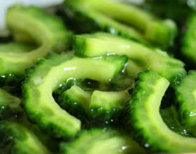 冰镇苦瓜:'1.将苦瓜切成两半,去掉瓤,切成长薄片;2.将苦瓜片放入盆中,加适量水,冰块拌匀,入冰箱放15分钟;3.将苦瓜放入深盘中,倒入醒目冷饮即可,上桌时带...    详细介绍