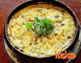 6.把洋葱、牛肉放在锅中,将碗芡倾入,加上包尾油5克炒匀上碟便成。